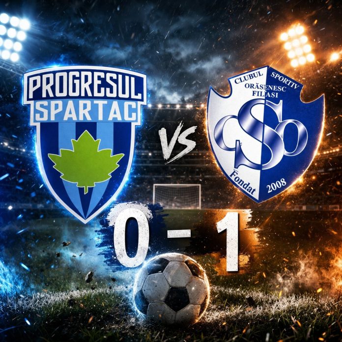 ACSO Filiași a debutat în play-out-ul Seriei 5 cu o victorie în deplasare, scor 1-0, pe terenul formației Progresul Spartac, în urma unui meci în care echipa a avut o evoluție echilibrată atât în ofensivă, cât și în defensivă.
