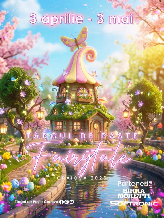 Târgul de Paște din Craiova se deschide vineri, 3 aprilie 2026, în Parcul Nicolae Romanescu, unde va avea loc o nouă ediție desfășurată sub tema „Fairytale”. Evenimentul se va derula până pe 3 mai și va include spectacole, ateliere, concerte și activități pentru toate vârstele.