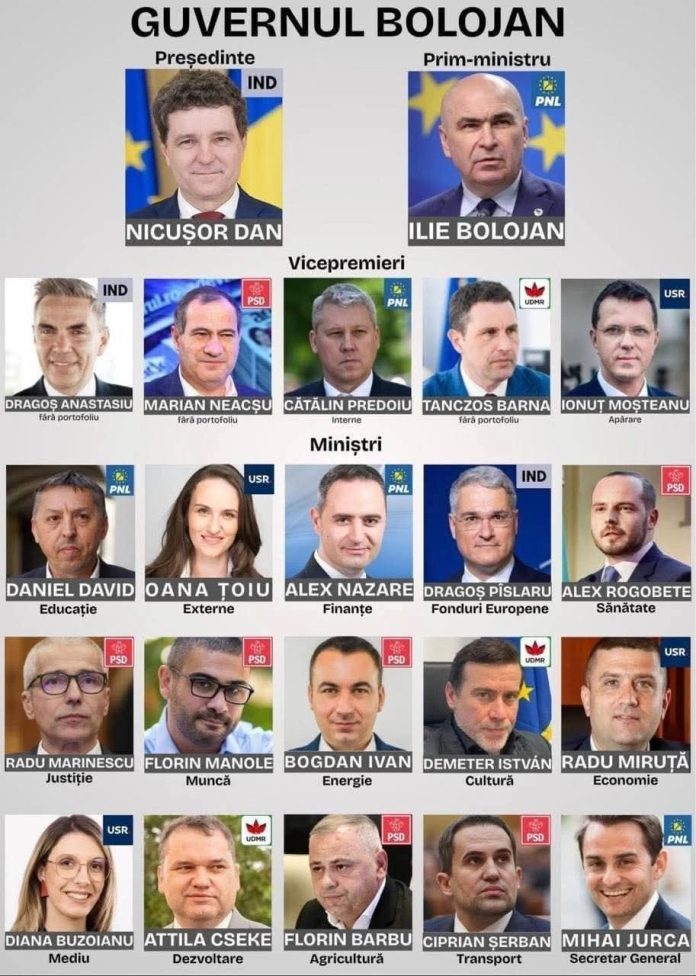 - Ionuț Moșteanu – vicepremier, ministrul Apărării Naționale